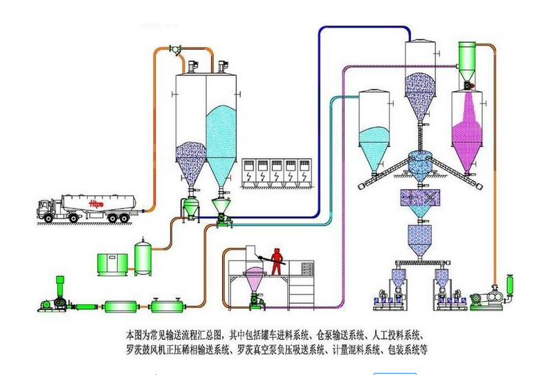 2、粉體氣力輸送系統是全封閉的,由于是封閉的,這些相對其他的物料輸送系統無揚塵更清潔,更環保,且易于維護。